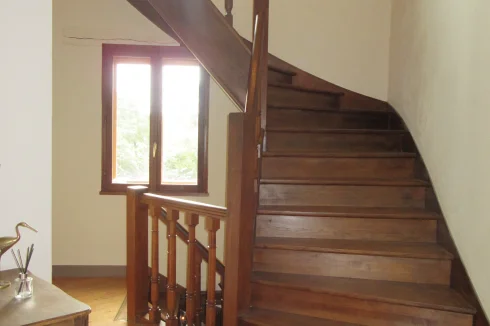 The main house comprises a large kitchen, spacious sitting room with fireplace and balcony and a loo. On the first floor there are 3 good sized bedrooms and a bathroom. On the second floor, a vast bedroom with ensuite shower room. There is a cellar below.