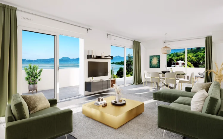 This French property for sale is a complex of 4 buildings around a central island. All the properties will have an unobstructed view with plenty of light, with many being either corner or dual-aspect apartments. O'Port has apartments ranging from 1 bed to 5 beds which you can enjoy unobstructed views of Lake Geneva, from the balconies and terraces that extend the apartments. The residence has been fitted with a videophone system for security purposes. There are also cellars for storage in the basement and parking places and garages available to the residents.